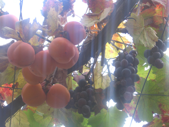 Figues, pamplemousses, kakis, vignes, olives et légumes du jardin biologique.