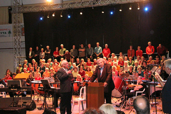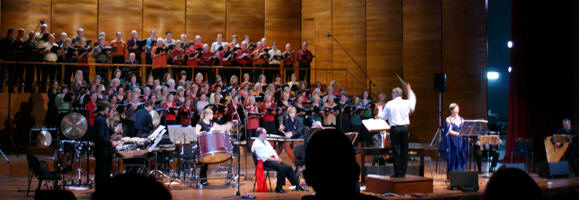 La „SingAkademie“ de Basse-Saxe avec son orchestre et sa chorale (130 artistes) à Hellenikon Idyllion pour la représentation de Canto General composé par Mikis Theodorakis