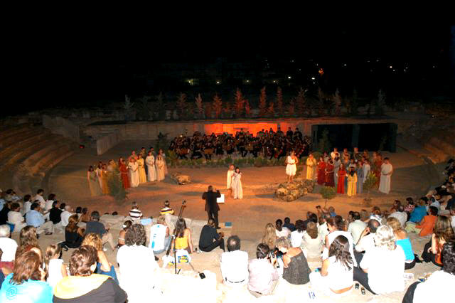 Ci-dessus, l’opéra Orphée et Eurydice dans le théâtre antique d’Argos.