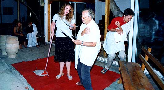 Bei allen Gästen beliebt: geselliger griechischer Aben; unter Begleitung hiesiger Sänger und Gitarristen lernen wir griechisch tanzen und singen und genießen den Wein und die kulinarischen Spezialitäten Griechenlands (Unkostenbeteiligung).