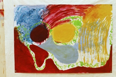 die erste Unterscheidung im leeren Raum. Diese Unterscheidung dient als Ausgangspunkt. Sie wurde so gesetzt, als ob ich mir sicher gewesen wäre, was ich malen würde, obwohl ich wußte, daß diese Handlung alles andere als sicher war. Der nächste Pinselstrich steht in Relation zum ersten und ist nun wirklich sicher, da ich einen vorherigen Anhaltspunkt habe für die nächste Unterscheidung, während ich gleichzeitig die Wirkung für den Bildsinn insgesamt im Auge behalte.
