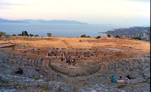 in the ancient theatres of Oiniades and in Argos, which is acted