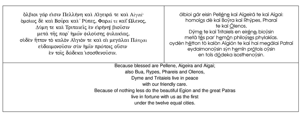 A commentary by Julia Diamantopoulou:”Flawless use of the attic dialect combined with his own style. Felicitous examples in every area to illustrate the philosophical saying. His own conclusions about wisdom and the happiness that the learning of the ancient Greek language gives one form the details no matter if the language is still spoken or not.