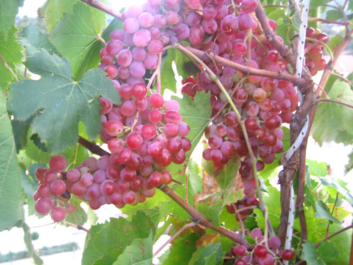 Table de ping-pong et bancs sous les vignes