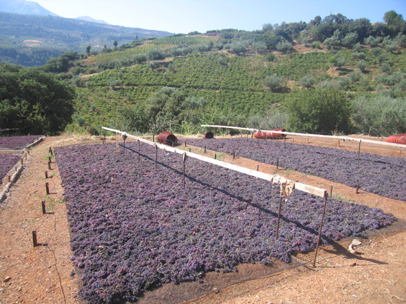 Figues, pamplemousses, kakis, vignes, olives et légumes du jardin biologique.