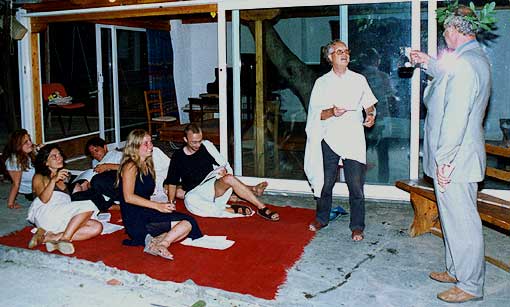 Bei allen Gästen beliebt: geselliger griechischer Aben; unter Begleitung hiesiger Sänger und Gitarristen lernen wir griechisch tanzen und singen und genießen den Wein und die kulinarischen Spezialitäten Griechenlands (Unkostenbeteiligung).
