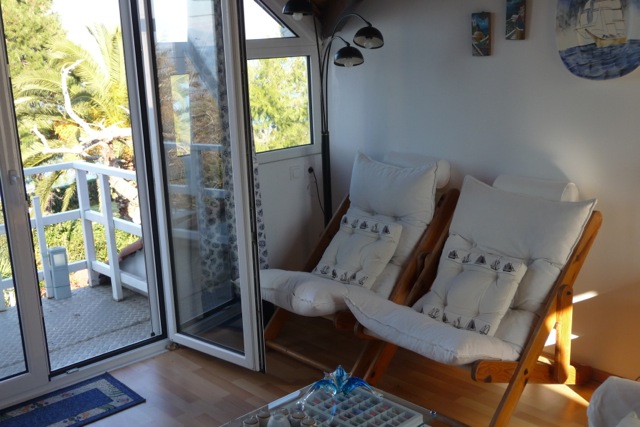 des trois côtés de la maison, donnant sur la mer et les montagnes
