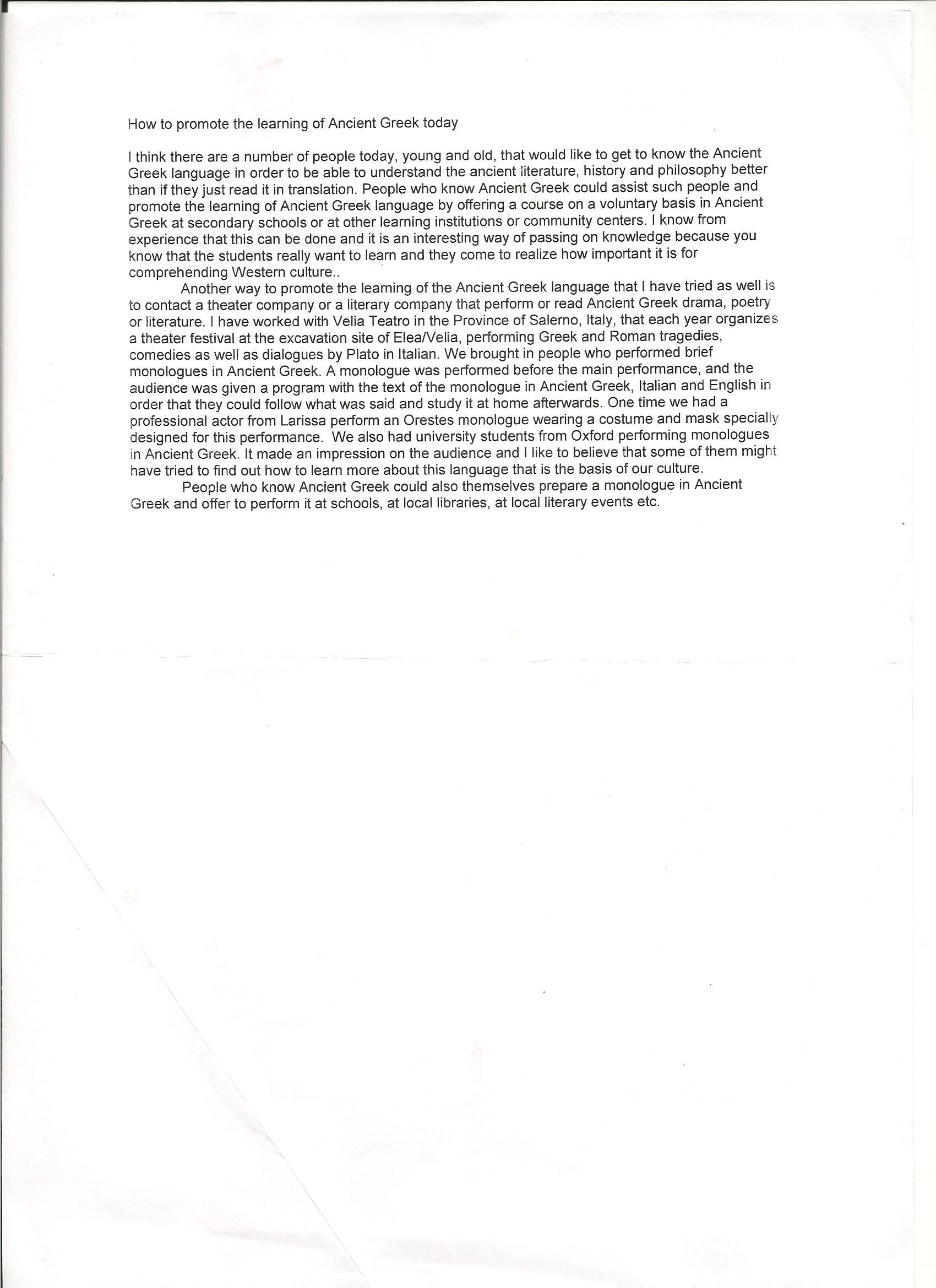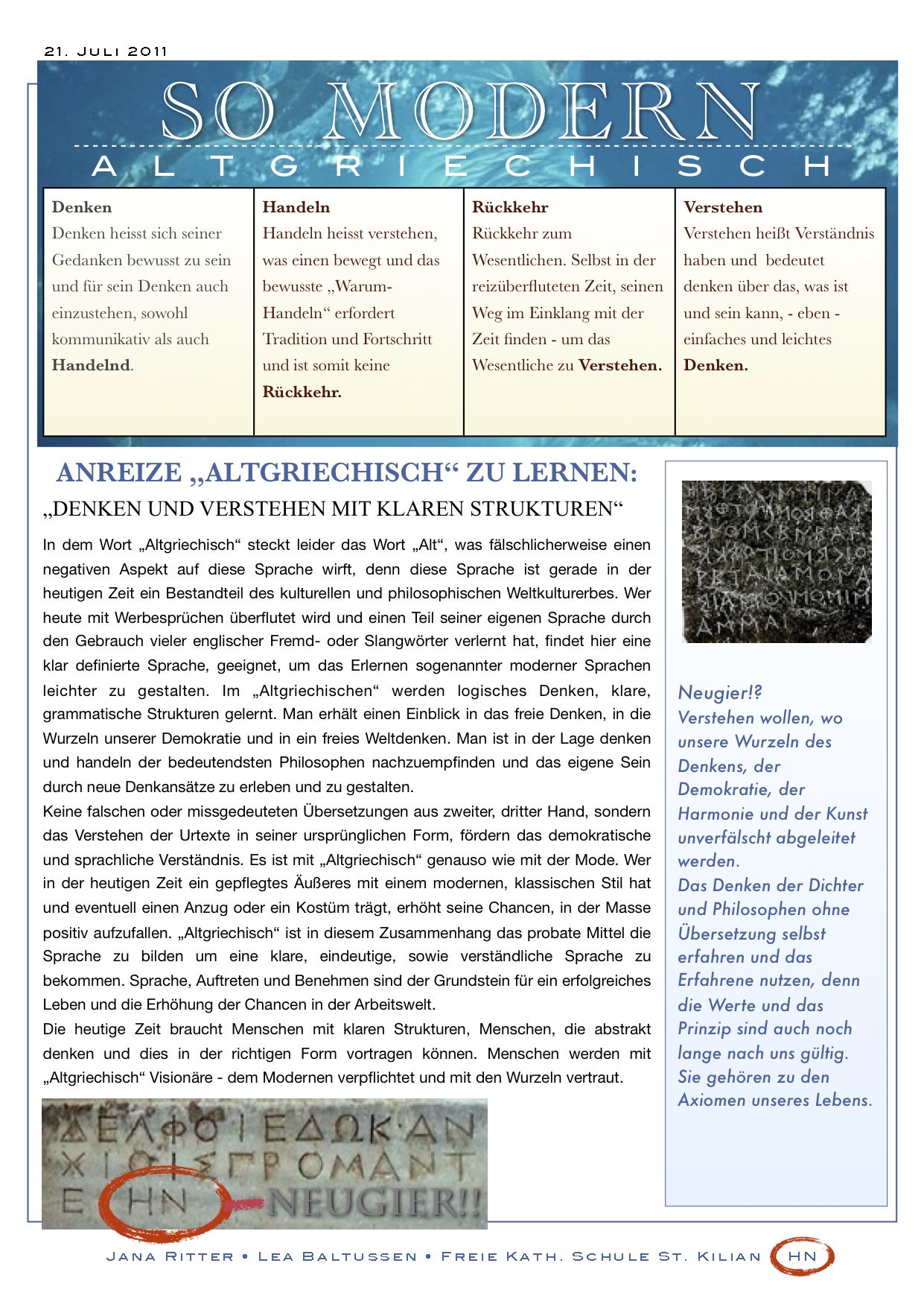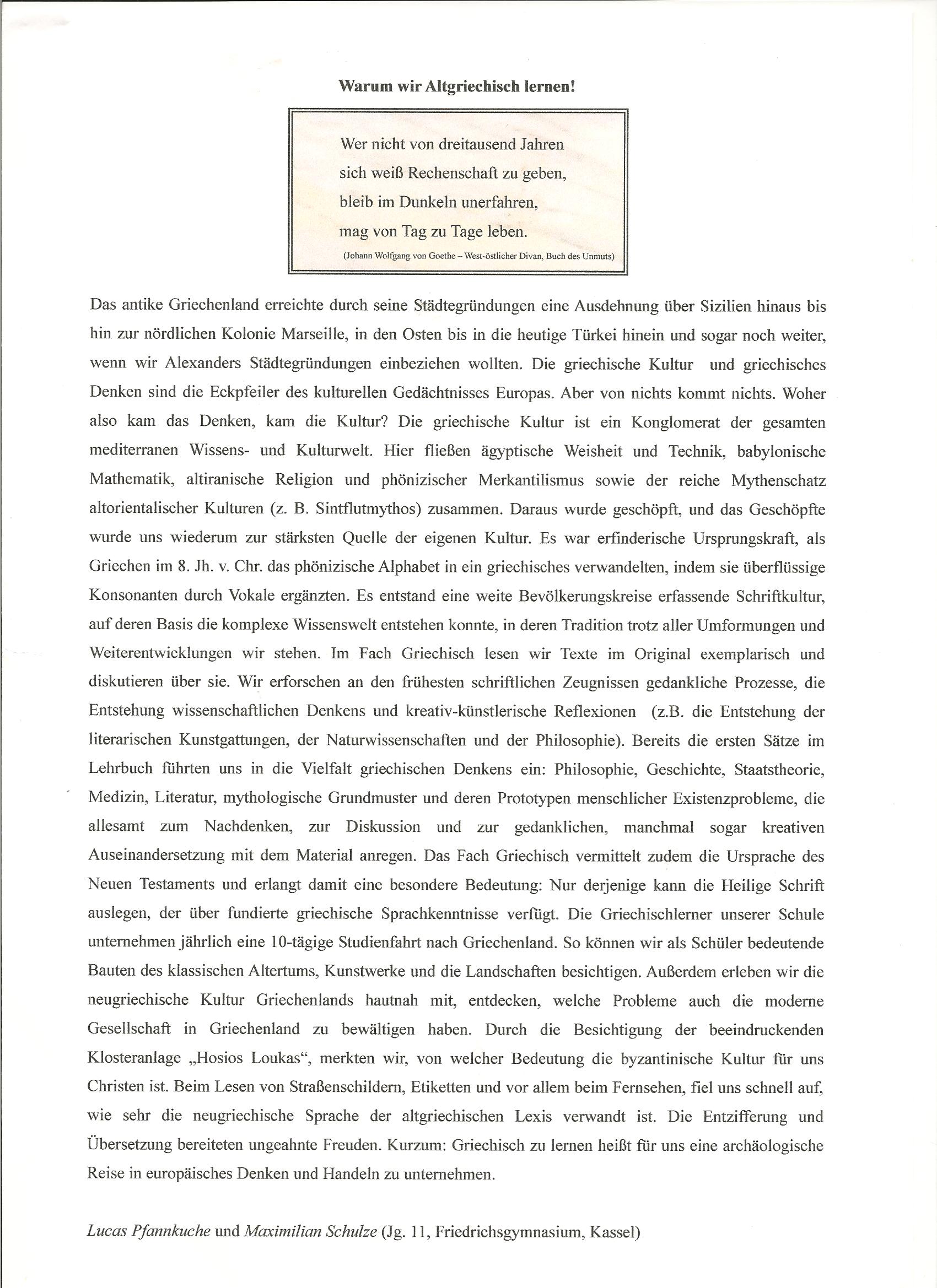 4. Verfasse ein Statement (ca. 400 Wörter) darüber, welche Anreize es heutzutage gibt, altgriechisch zu lernen und wie Du persönlich für das Erlernen der Sprache werben würdest.