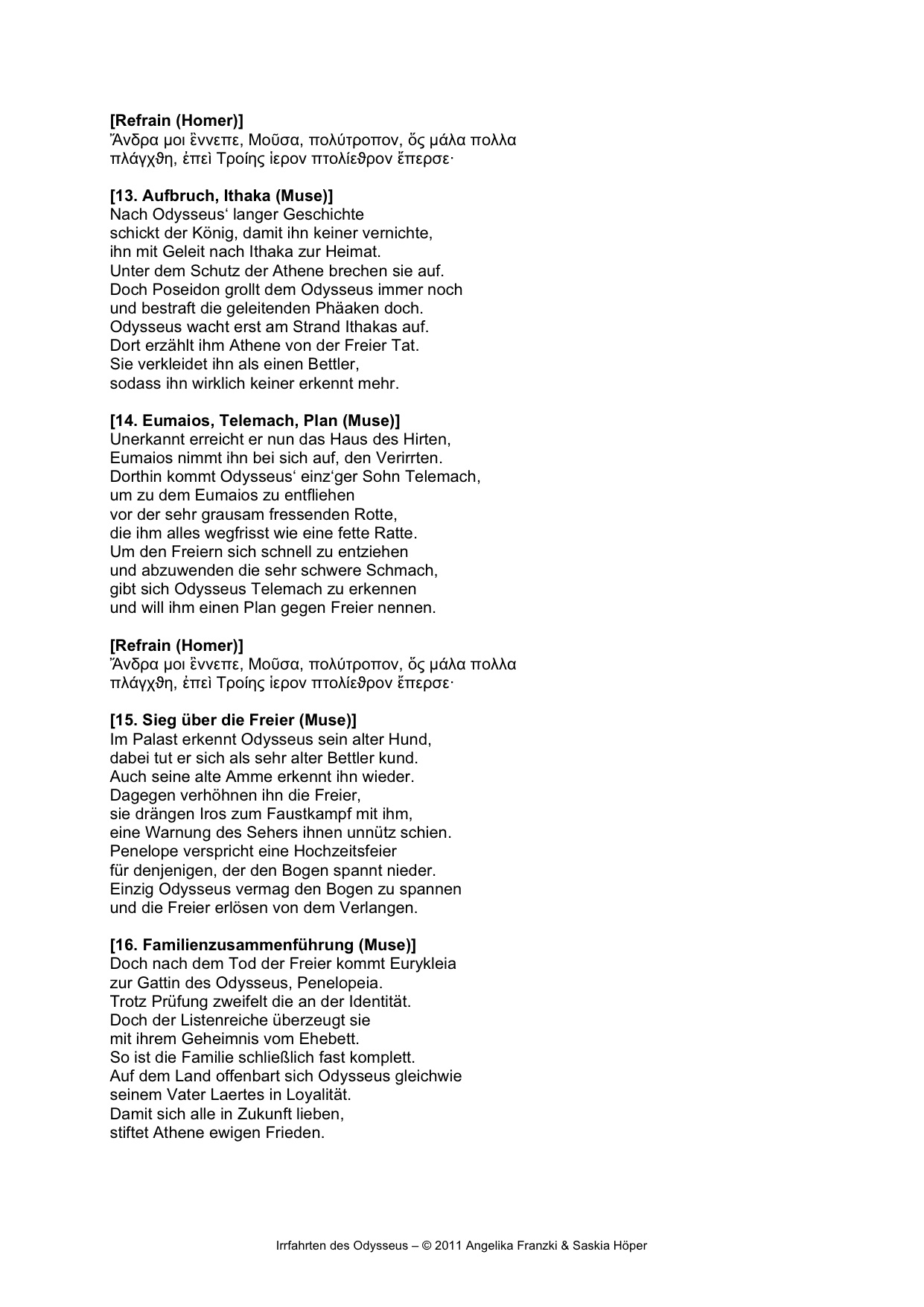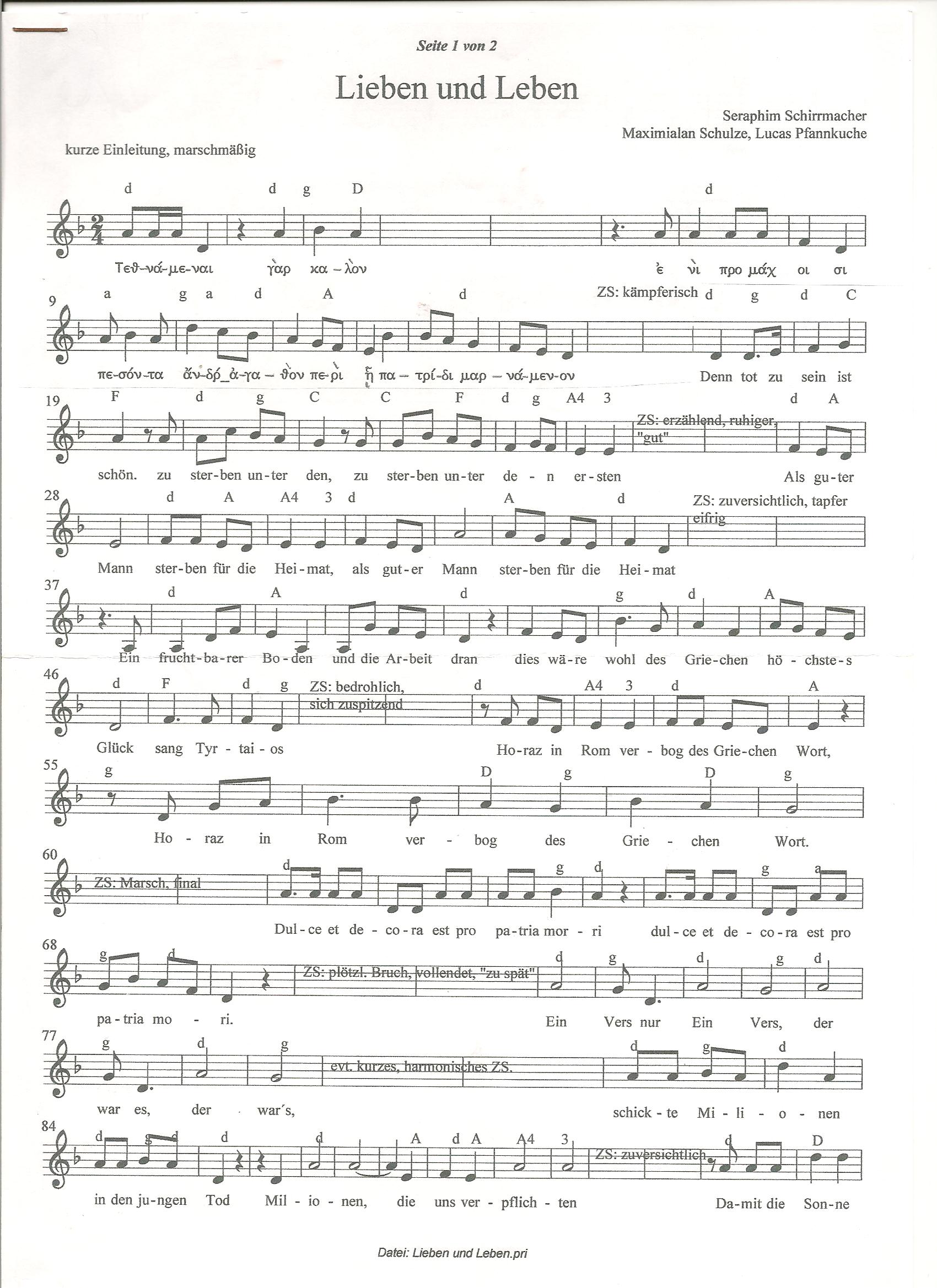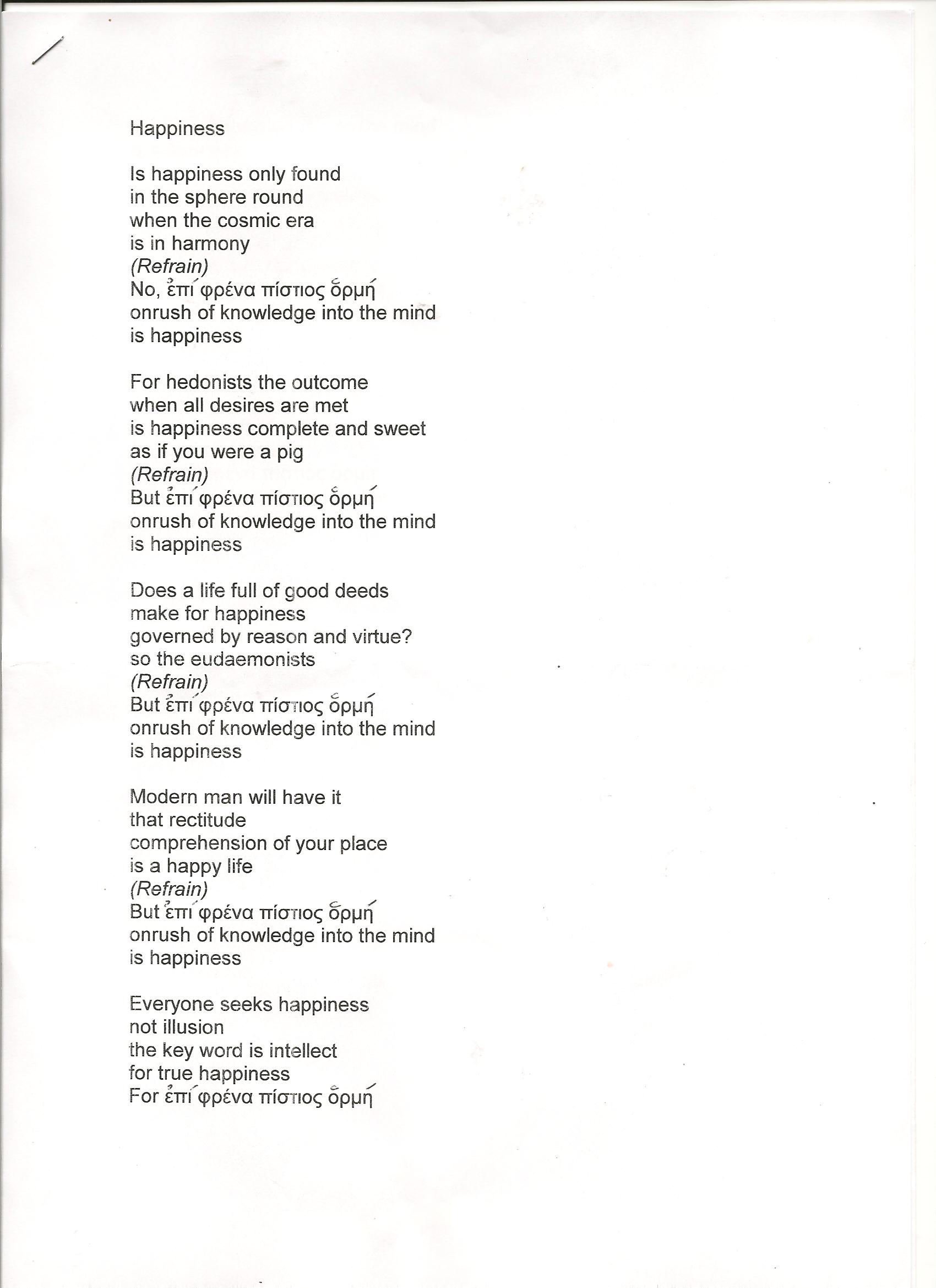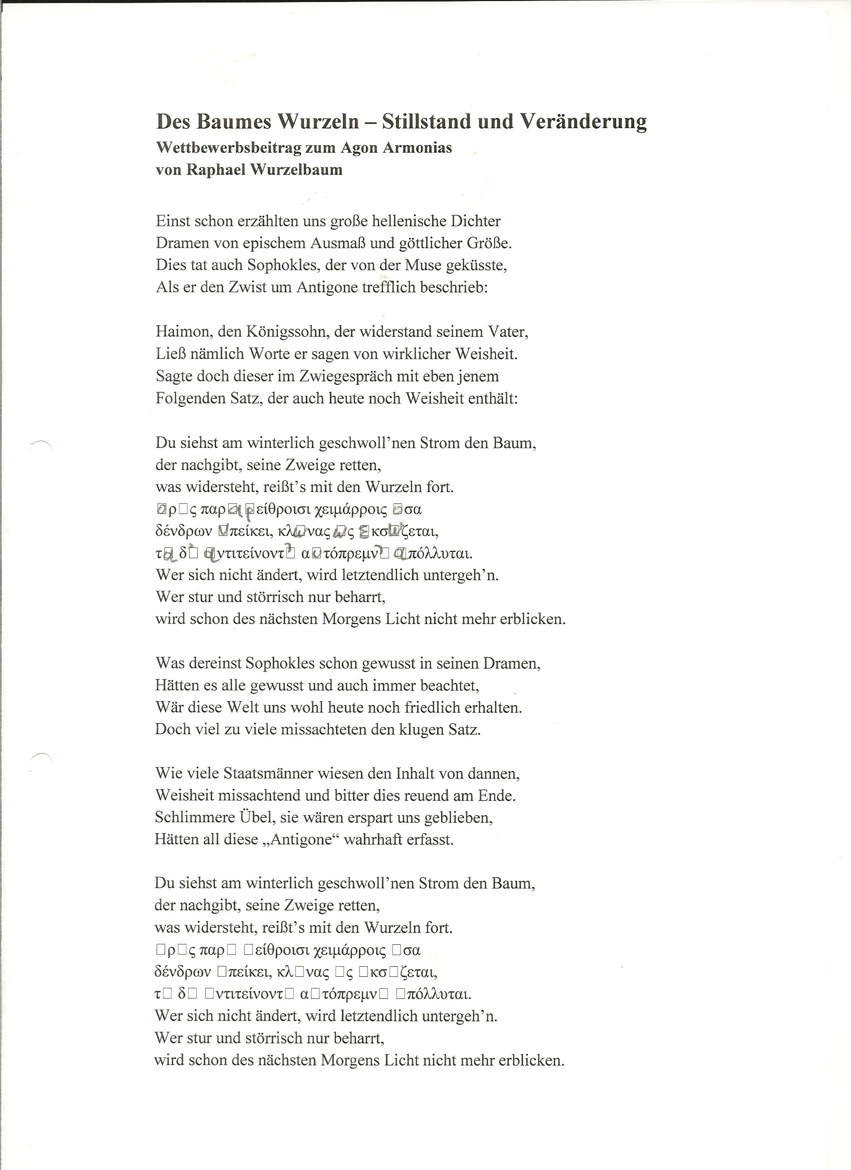 2. Verfasse unter Einbindung dieses Spruchs/ dieser Strophe ein Gedicht in deutscher, englischer, französischer oder neugriechischer Sprache, das den Sinn und die Aussagekraft dieses Spruches/ dieser Strophe wiedergibt und weiterführt. Hierbei soll der Spruch/ die Strophe und, wenn möglich, auch seine Übersetzung im Refrain in seiner ursprünglich erasmischen Aussprache wiederkehren.