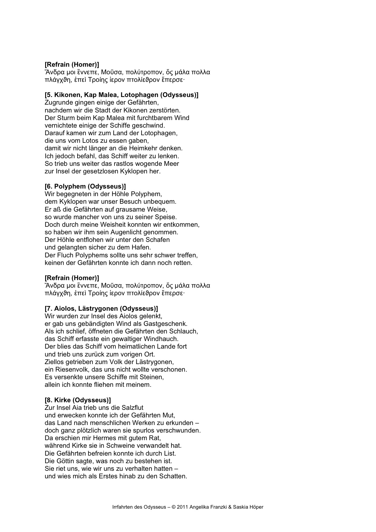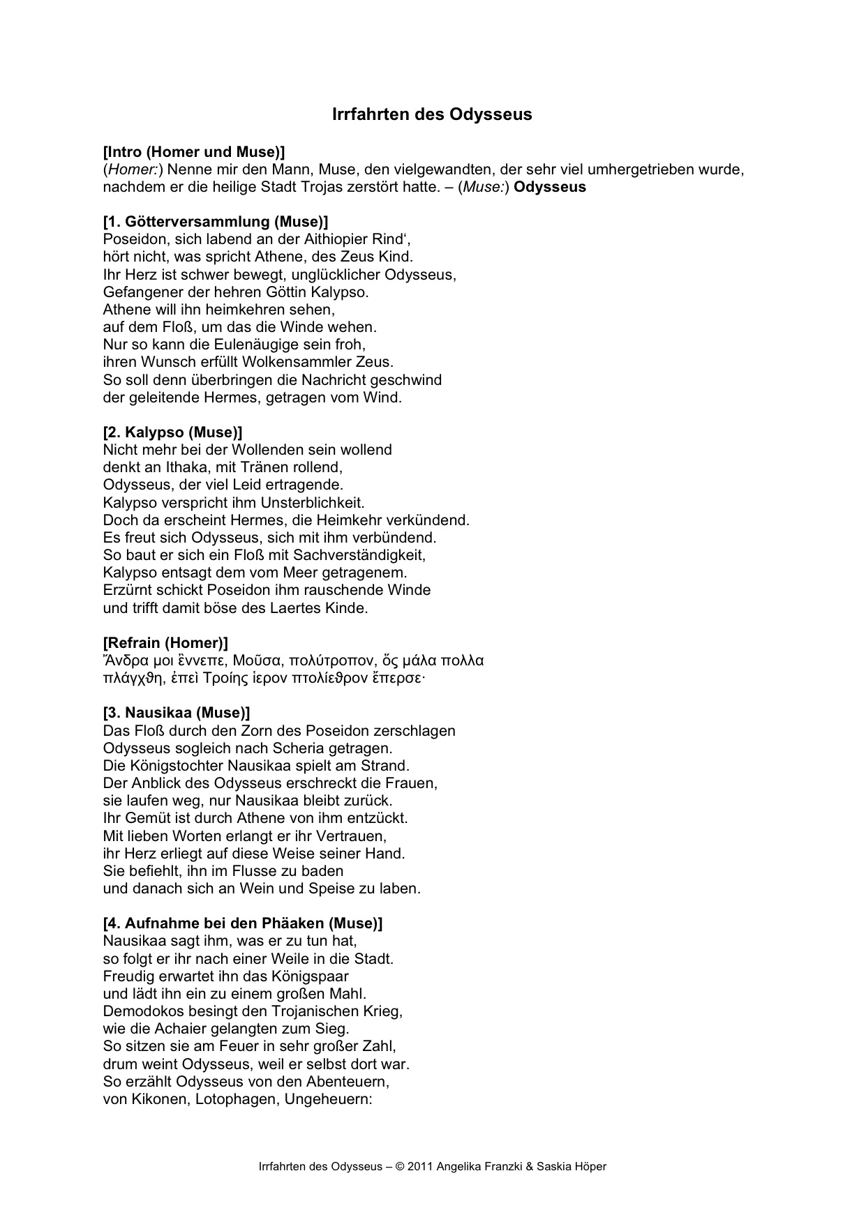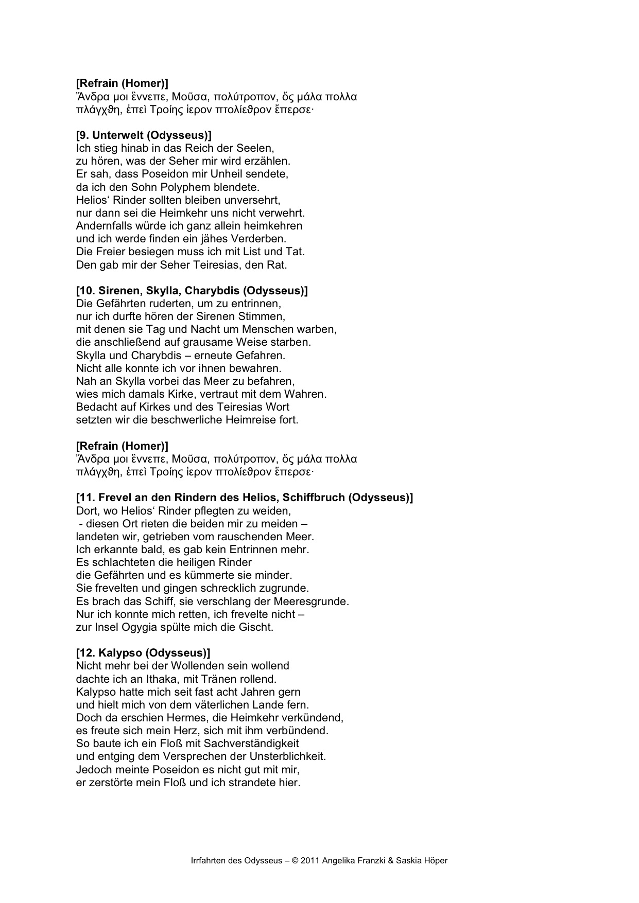 Irrfahrten des Odysseus aus der ersten Strophe von Odyssee