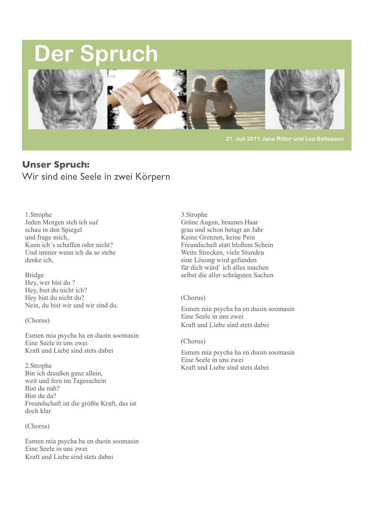 1. Wähle einen Spruch oder die Strophe eines altgriechischen Philosophen oder altgriechischen Dichters, der/die einen Umfang von ca. 15 Worten nicht wesentlich überschreitet.